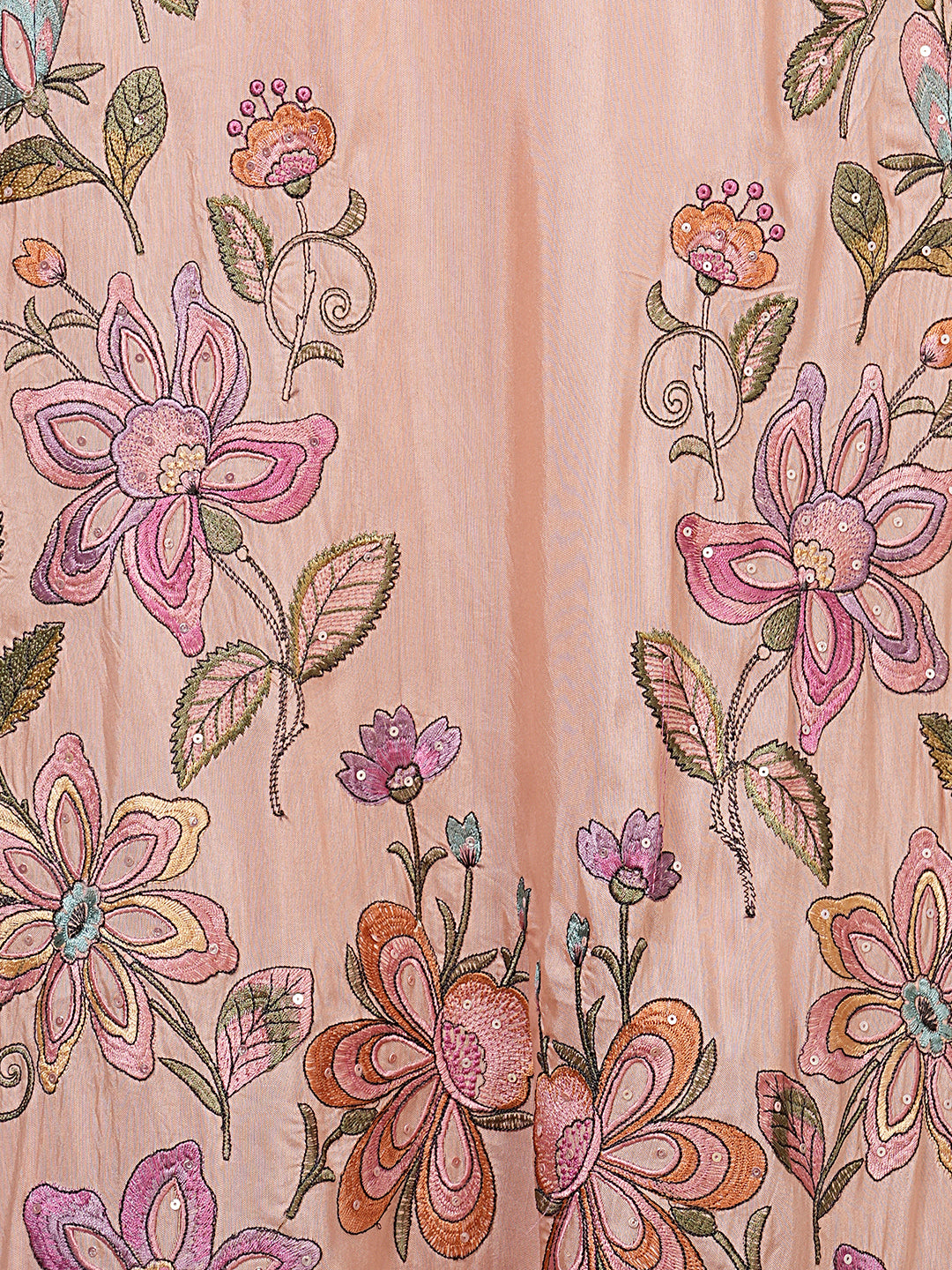 Floral Patchwork Embroidered A-Line Flared Kurta -...