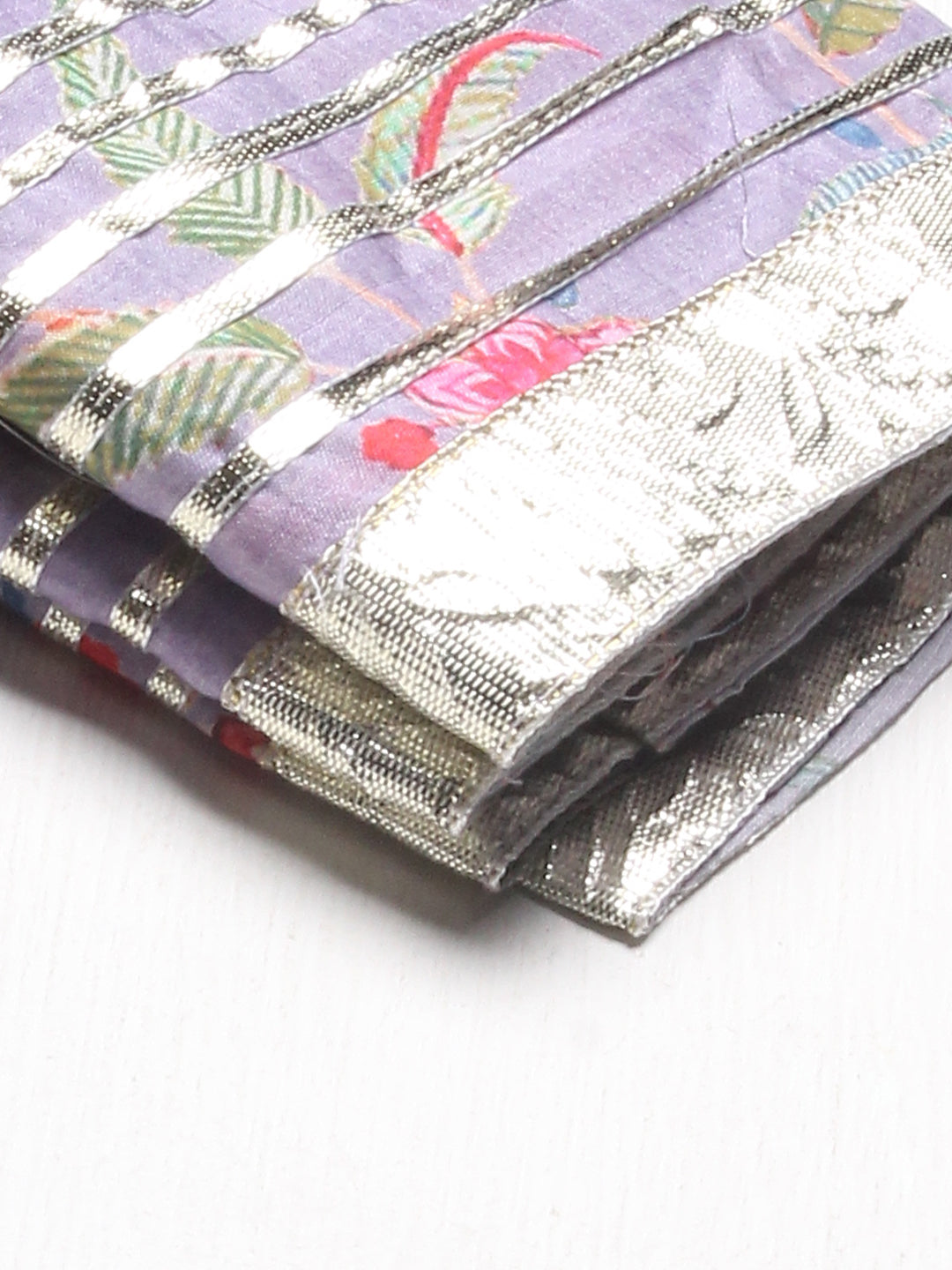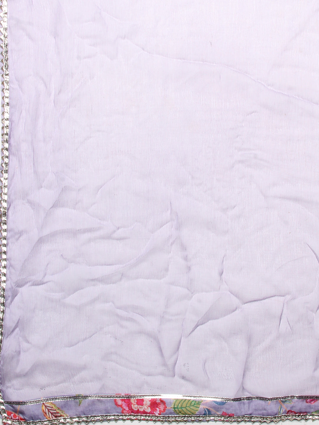 Floral Printed & Hand Embroidered Kurta with Sharara & Dupatta - Light Purple