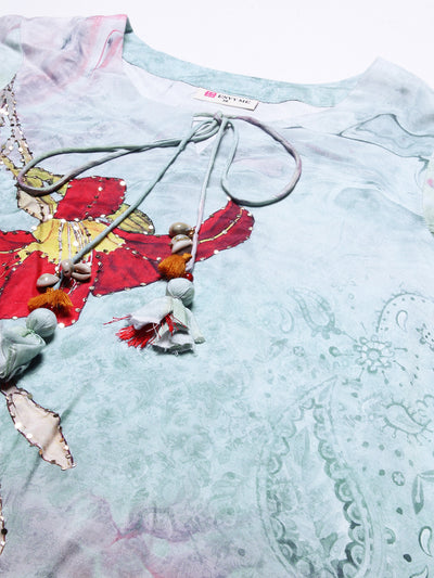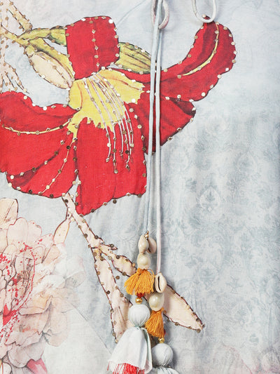 - Dori Tie-up Neckline with Fringed Tassels & Sea Shells
