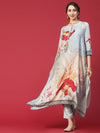 Floral Patchwork Embroidered A-Line Flared Kurta -...