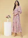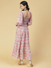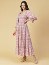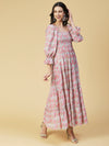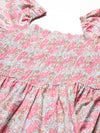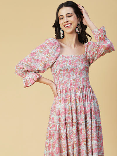 Floral Printed Smocked Bishop Sleeves Dress - Rose