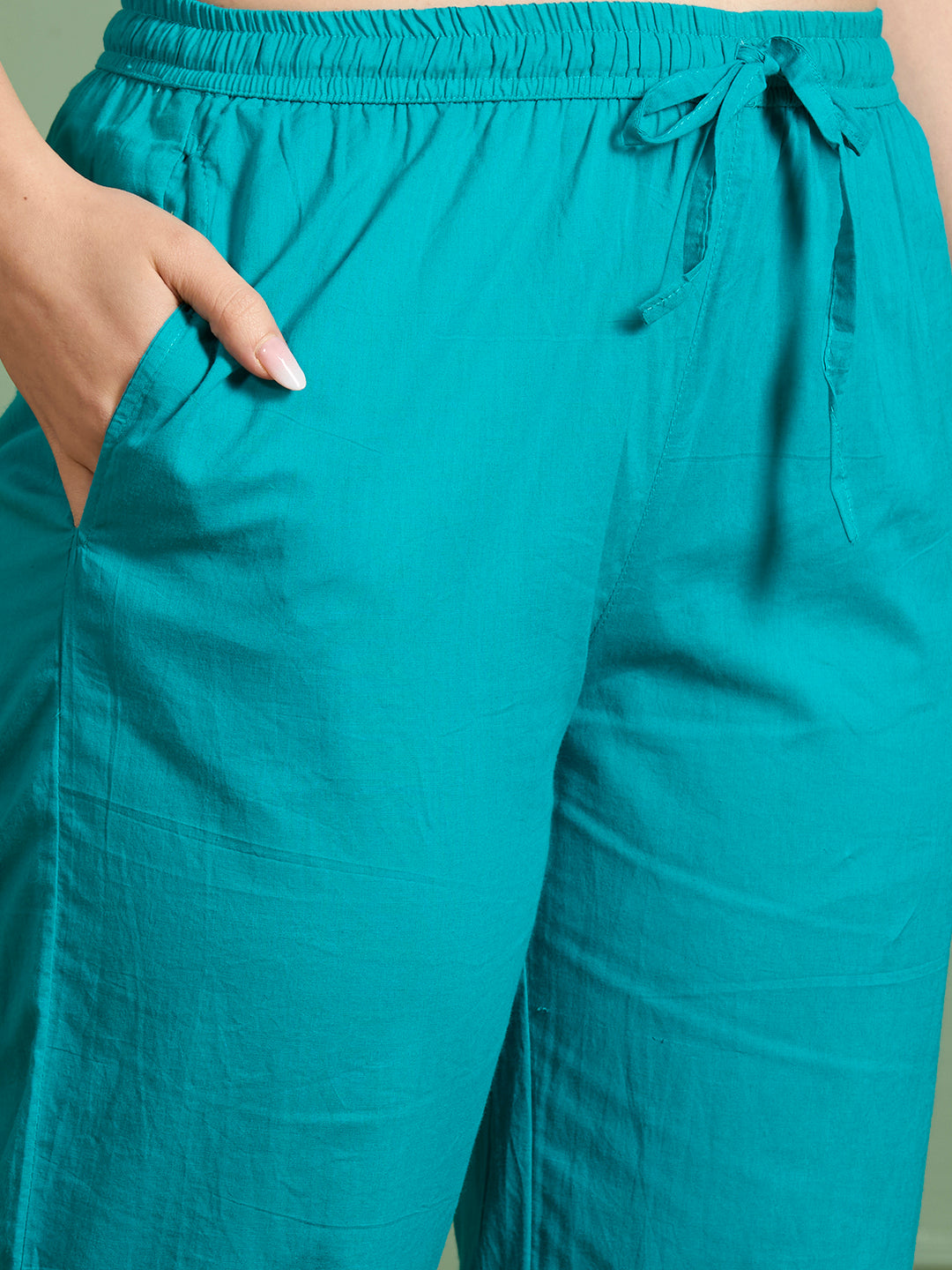 Brighten up your ethnic wardrobe with this Floral Printed Straight Fit Kurta Set in Sea Green. Made from breathable cotton fabric, it features a flattering V-neckline and elegant floral prints. Paired with a chic palazzo and a pure cotton dupatta, this ensemble is perfect for a fresh and festive look.
