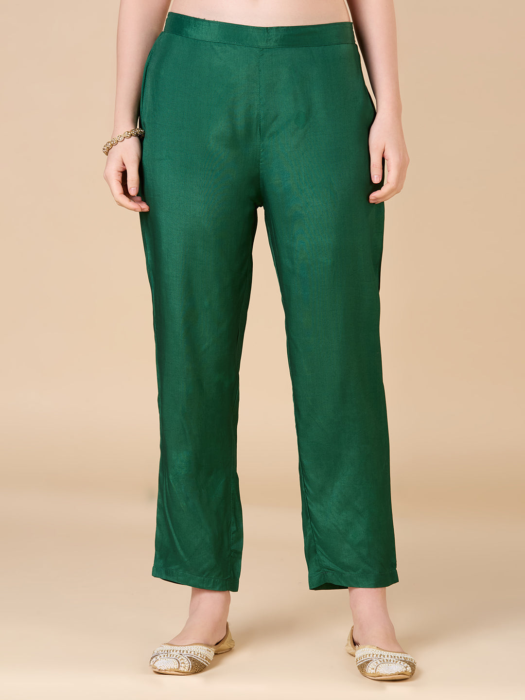Floral Woven & Hand Embroidered Straight Kurta with Pant & Dupatta - Green