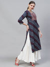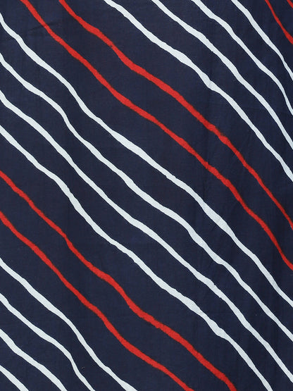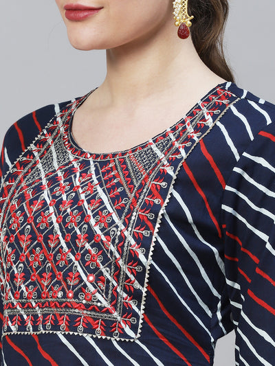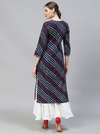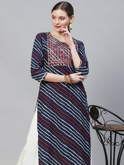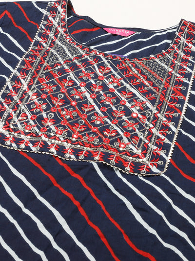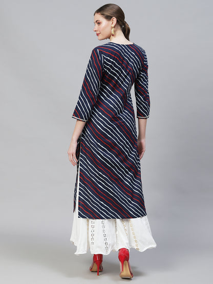 Leheriya Printed & Embroidered Straight Fit Kurta – Dark Blue