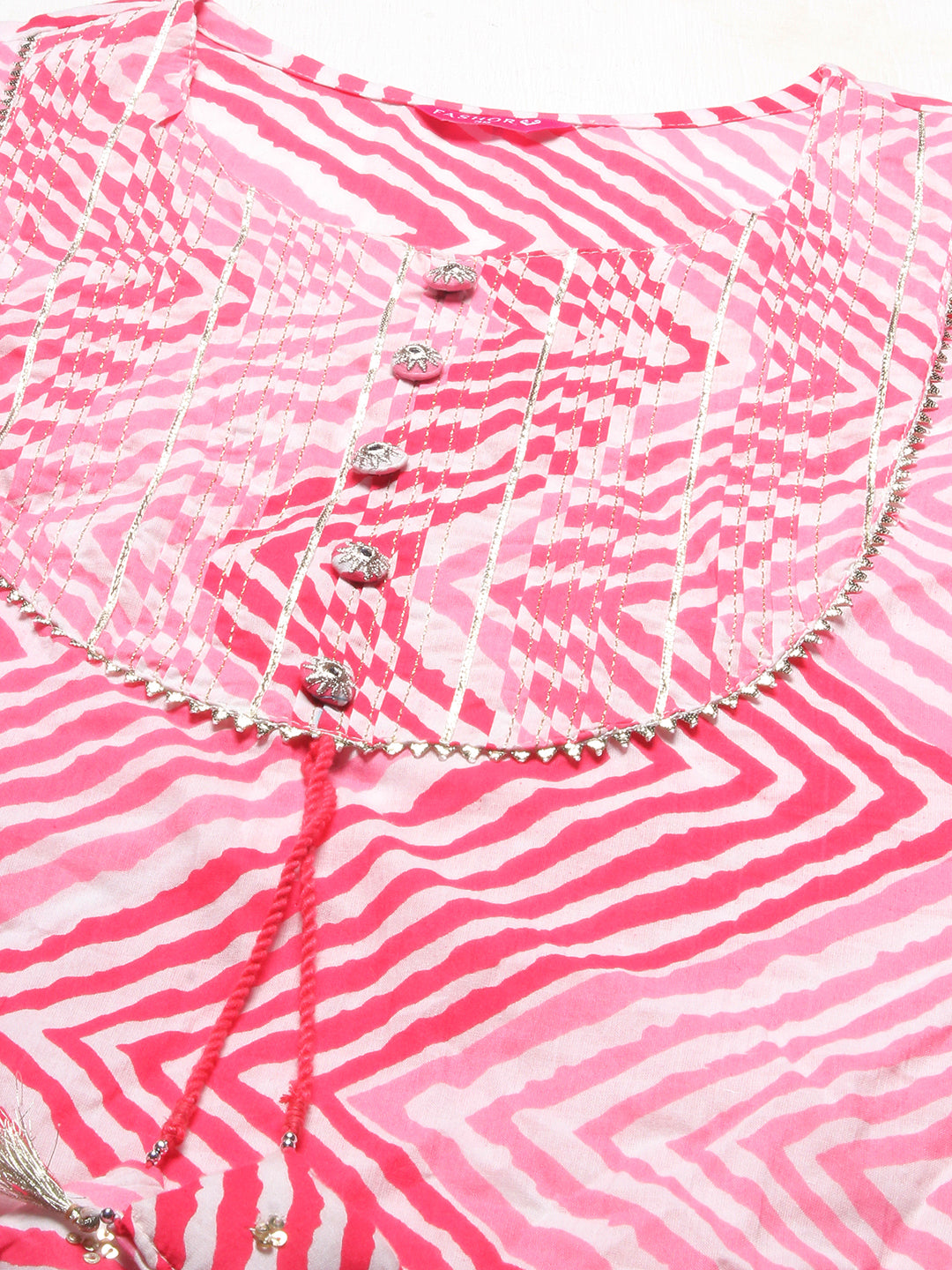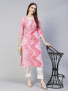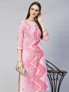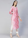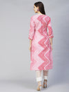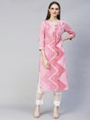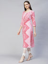 Leheriya Printed & Embroidered Straight Fit Kurta - Pink