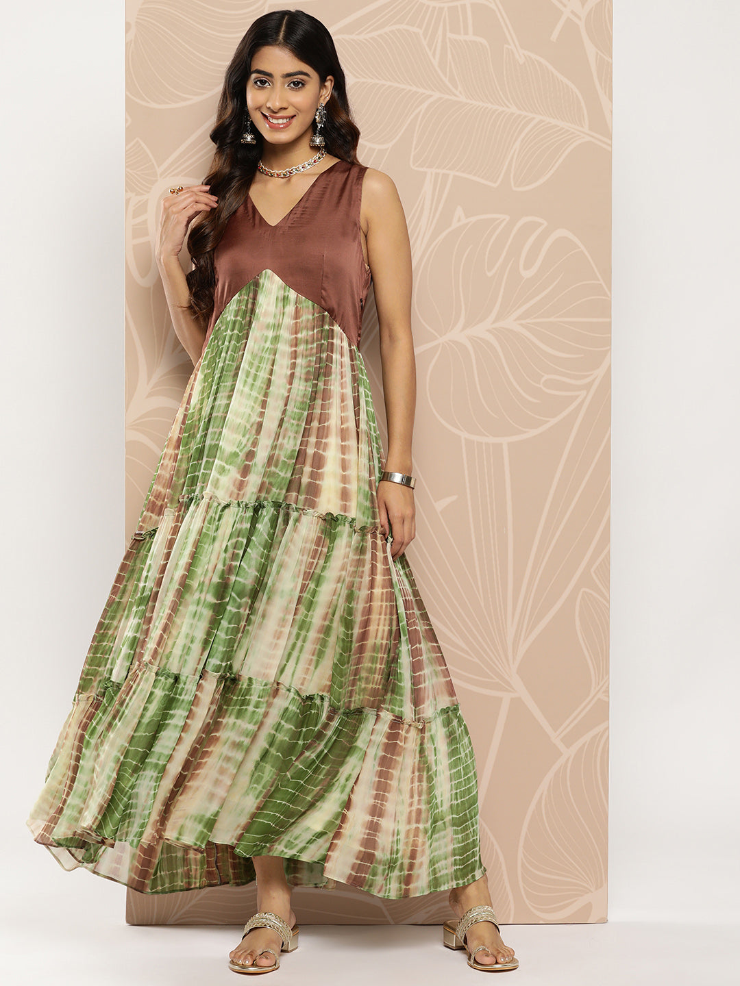 Shibori Dyed Tiered Fit & Flare Maxi Dress - Multi