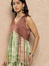 Floral Patchwork Embroidered A-Line Flared Kurta -...