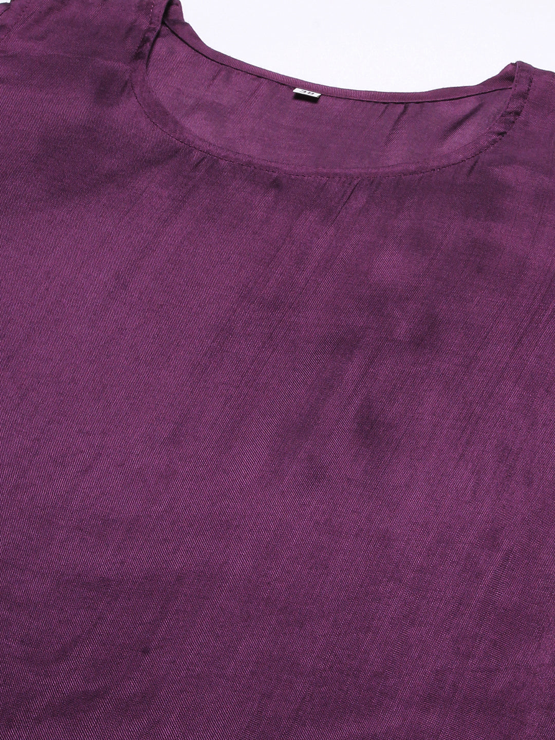 Solid Cowl Midi Dress with Hand Embroidered Belt - Purple
