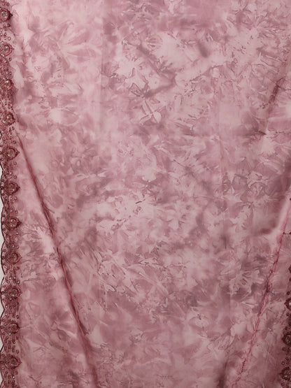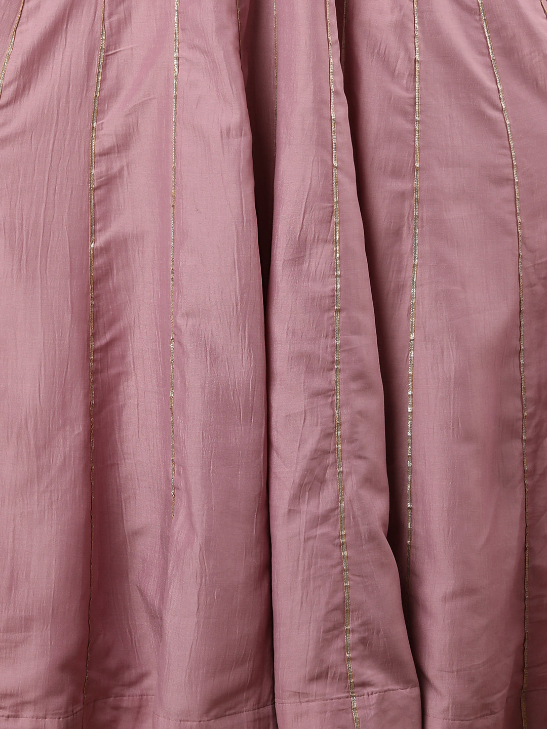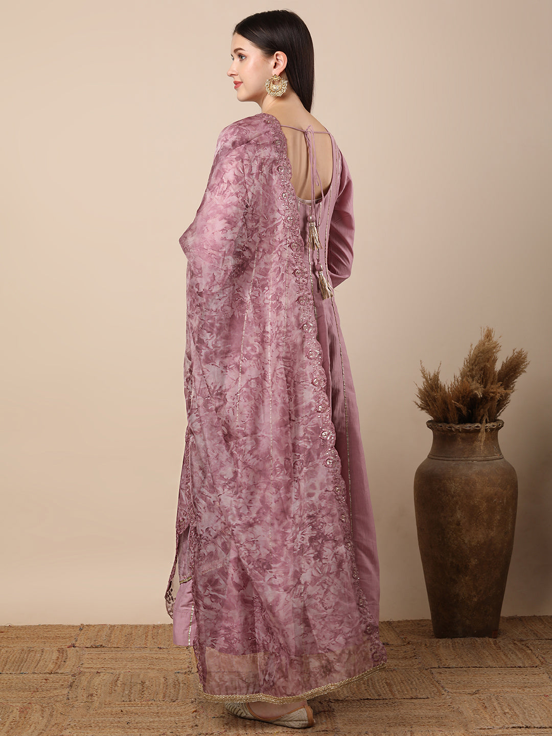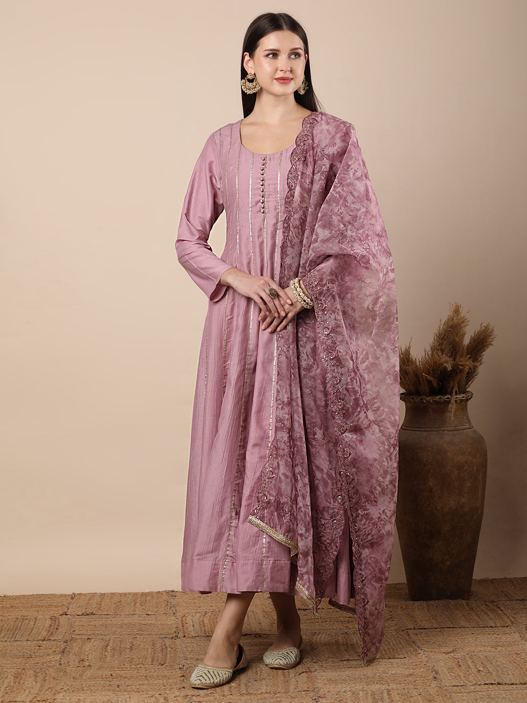 Solid Ethnic Anarkali Flared Maxi Dress with Printed & Embroidered Dupatta - Lavender