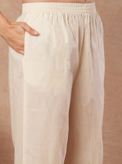 Solid Ethnic Floral Embroidered Straight Cut Kurta with Pant - White