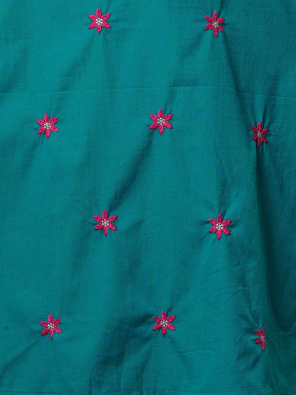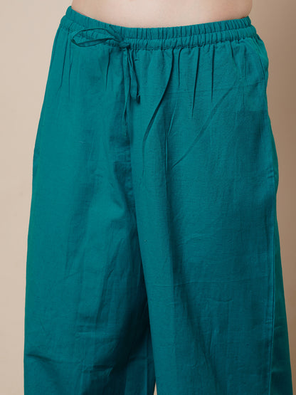 -Introducing the Solid Ethnic Floral Embroidered Straight Fit Co-ord Set in Turquoise Blue—a harmonious blend of traditional craftsmanship and contemporary flair. This ensemble features a straight-cut kurta adorned with delicate floral embroidery along the round neckline, exuding timeless elegance. Paired with matching straight-fit palazzo, the set offers both comfort and style. Crafted from breathable cotton fabric, it ensures all-day comfort while showcasing intricate detailing that reflects rich cultural heritage. Elevate your wardrobe with this exquisite co-ord set, where tradition meets modernity in perfect harmony.