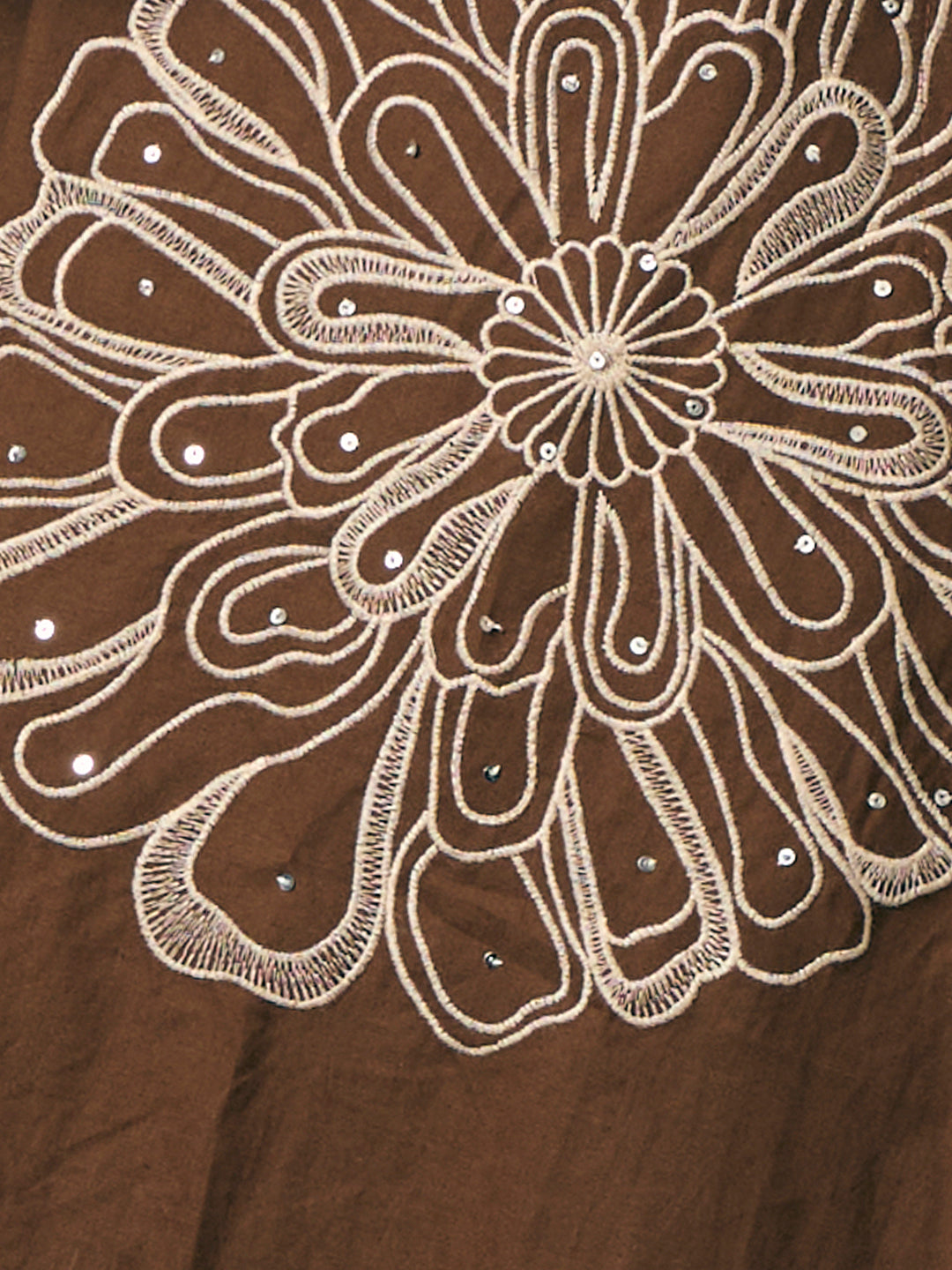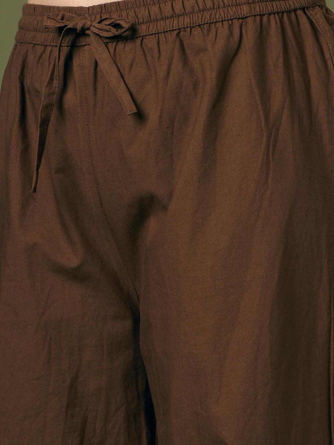 Solid Floral Embroidered A-Line Co-ord Set - Brown