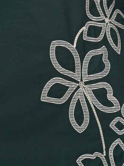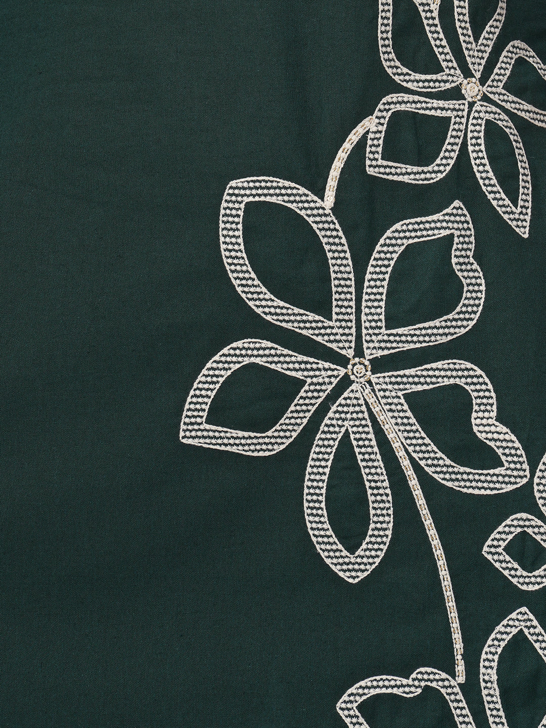 Solid Floral Embroidered Straight Fit Co-ord Set - Green