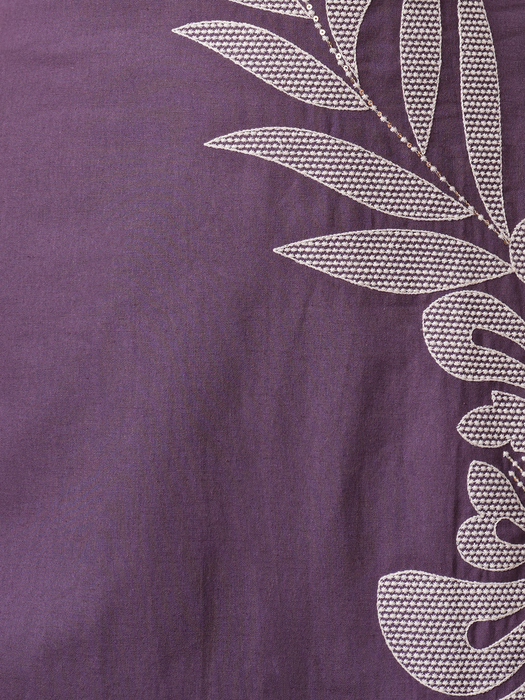 Solid Floral Embroidered Straight Fit Co-ord Set - Purple