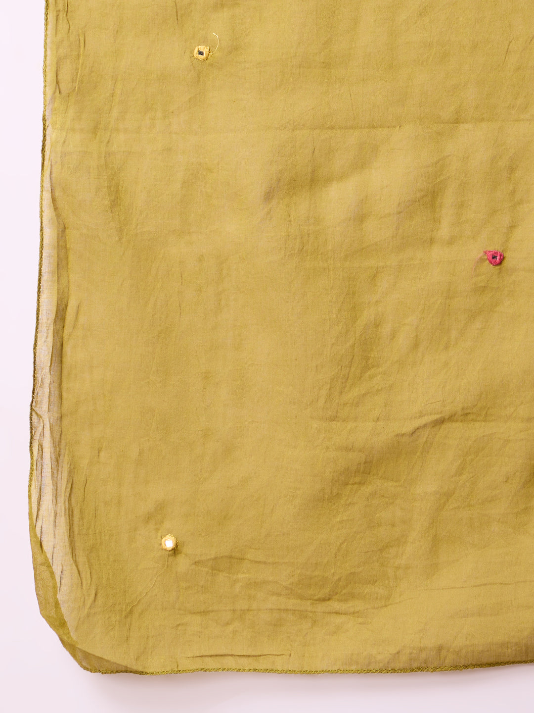 Solid Floral Embroidered Straight Kurta with Pant & Dupatta - Green