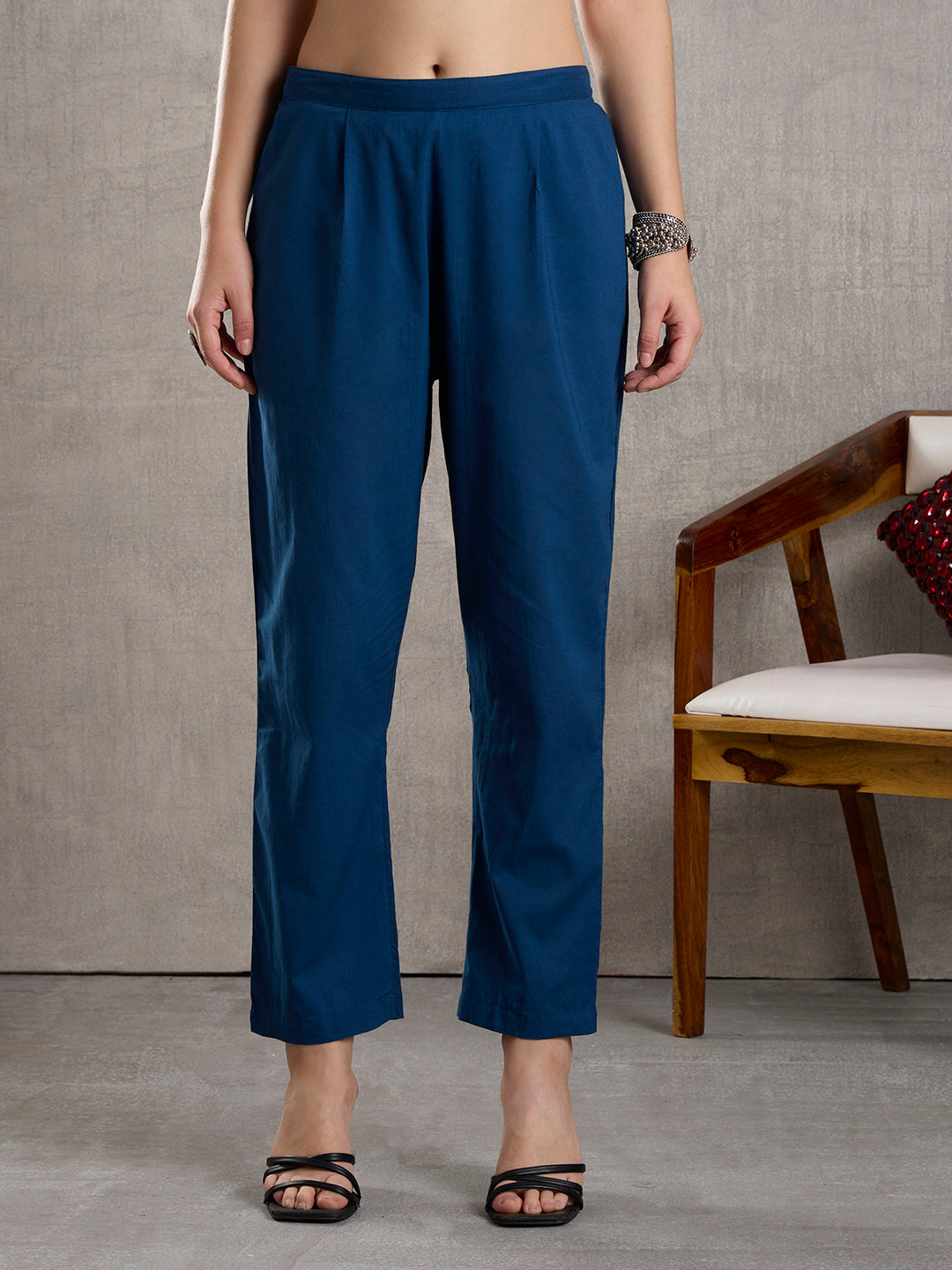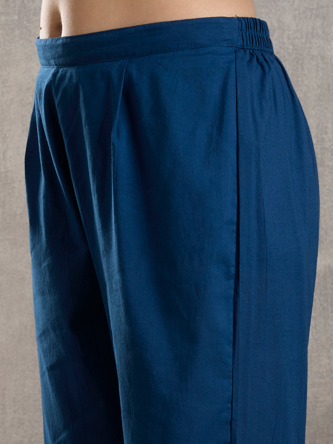 Step into timeless elegance with this Solid Floral Printed & Embroidered Anarkali Set in Blue. Crafted from soft cotton fabric, the Anarkali features a classic round neckline with intricate handwork embellishing the yoke, complemented by subtle floral prints. Paired with a comfortable palazzo and a printed pure cotton dupatta, this ensemble blends grace and comfort—ideal for festive days and elegant gatherings.