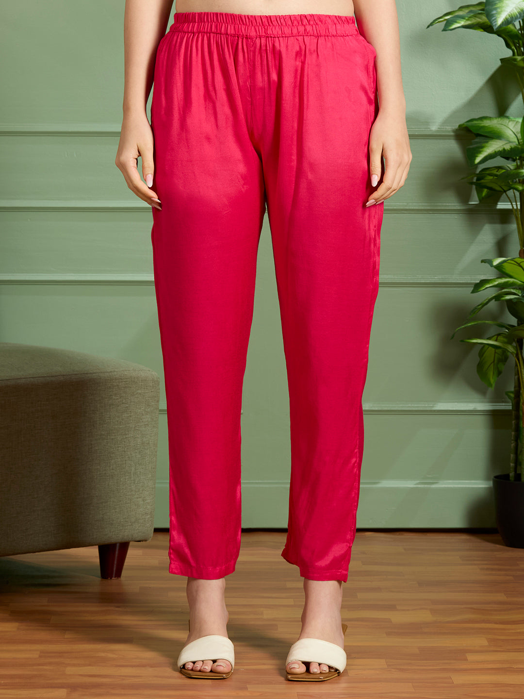 Elevate your ethnic charm with this elegant Solid Floral Zari Embroidered Straight Fit Kurta Set in a graceful pink hue. Crafted from a luxurious silk blend fabric, the kurta features a flattering V-neckline adorned with intricate floral zari embroidery on the yoke, adding a touch of regal allure. Paired with a matching solid pant for effortless sophistication and a delicate scalloped organza dupatta that adds a dreamy, feminine finish — this ensemble is perfect for festive celebrations and special occasions.