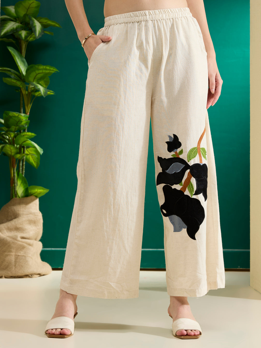 Elevate your ethnic wardrobe with this chic black kaftan kurta, crafted from breathable cotton-flax fabric for a soft, airy feel. Featuring a flattering V-neck and paired with abstract patchwork palazzo pants, this ensemble effortlessly blends contemporary style with traditional flair—perfect for festive or casual occasions.