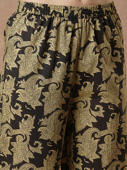 Elevate your ethnic wardrobe with this chic grey straight-cut kurta, tailored from soft, breathable cotton fabric. The front showcases a delicately printed yoke patch adorned with subtle sequin highlights, adding just the right touch of sparkle. It’s paired with a flowing floral-printed palazzo that complements the kurta beautifully. Perfect for festive gatherings, casual outings, or elegant daytime affairs.