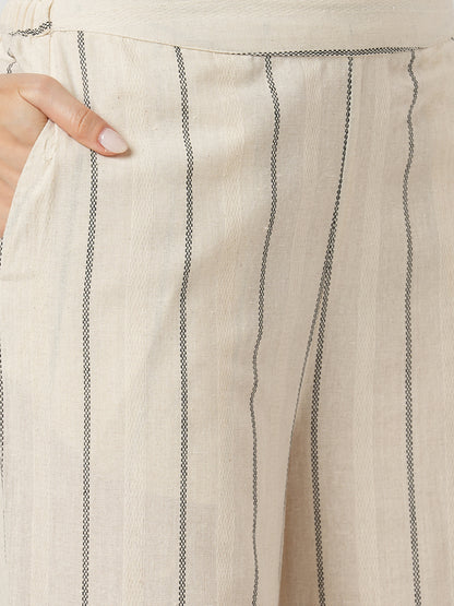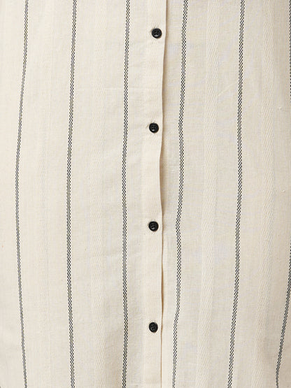 Solid Striped Woven Straight Fit Cotton Flax Co-ord Set - Off White