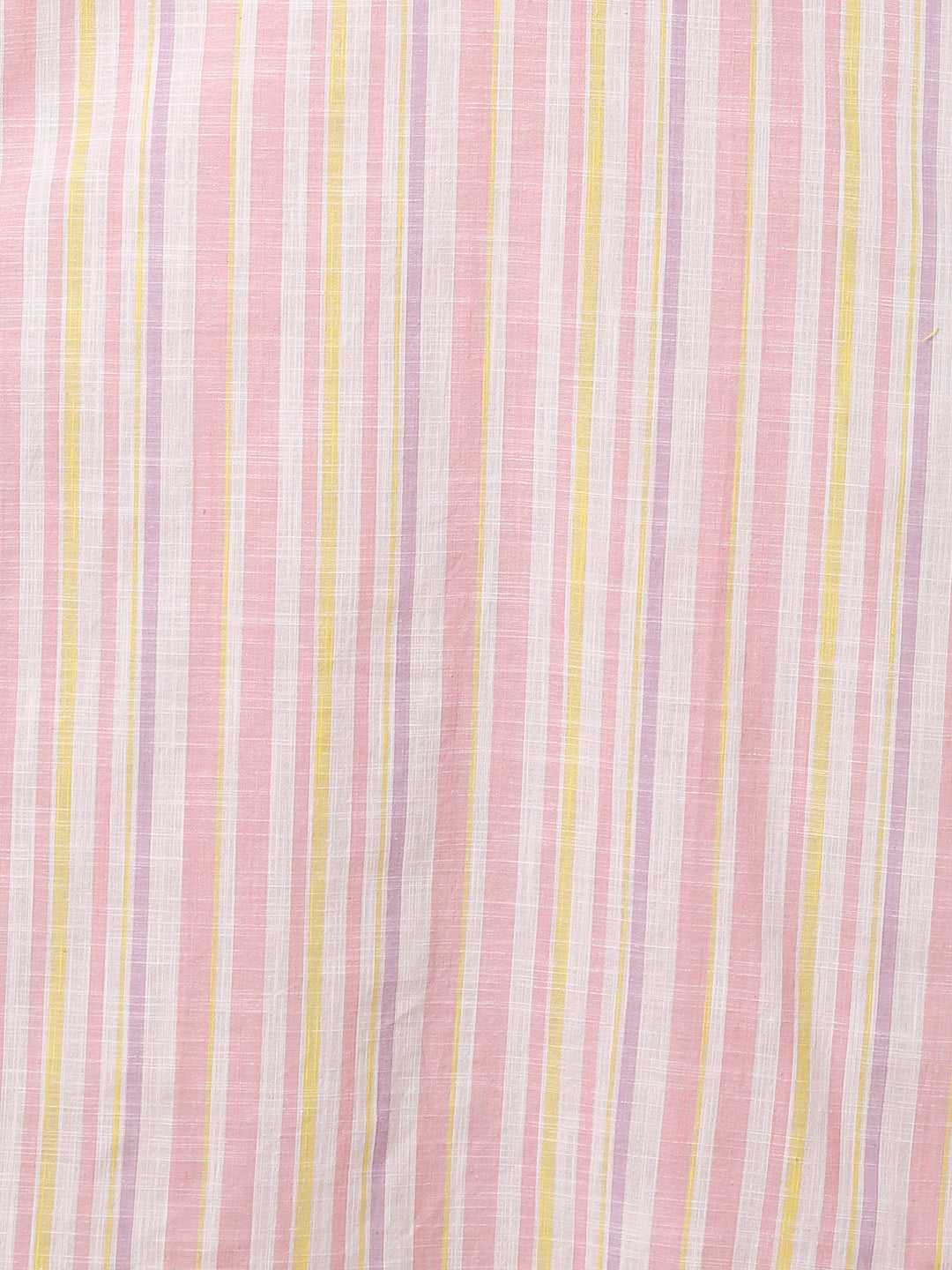 Stripes Woven & Floral Hand Embroidered Straight Fit Kurta - White