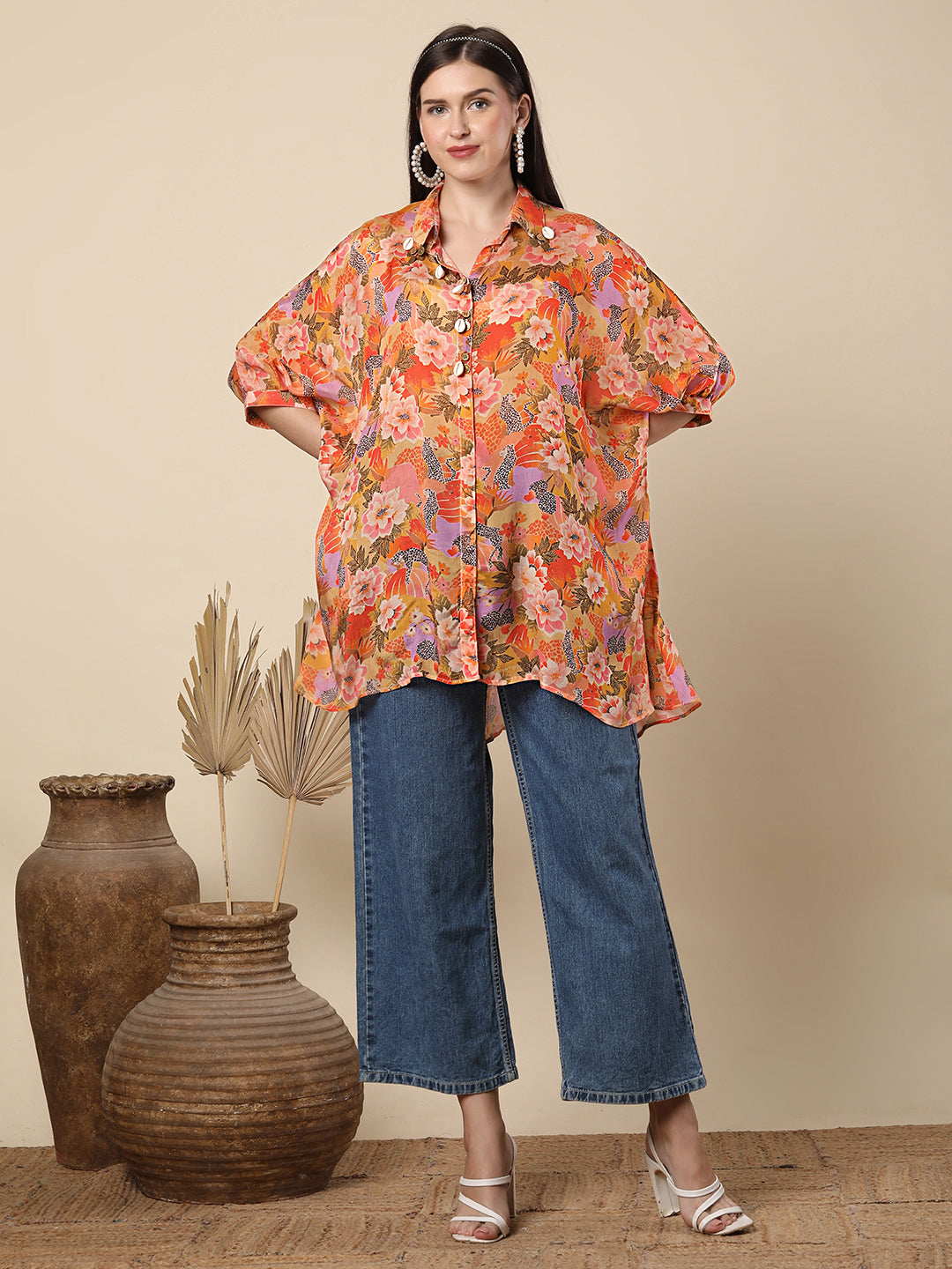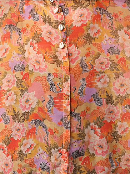Wild Botanica Printed Kaftan Chinnon Chiffon Top - Orange